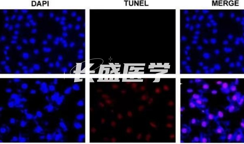 When genomic DNA is broken, the terminal 3 '-OH is exposed, and these exposed ends can be catalyzed by terminal deoxynucleotidyl transferase (Terminal Deoxynucleotidyl Transferase, TdT), allowing fluorescein-labeled dUTP (fluorescein-dUTP) to bind to it. This process can be detected using the TUNEL(TdT-mediated dUTP nick end labeling) method. The presence or absence of apoptosis can be easily detected by fluorescence microscopy or flow cytometry.